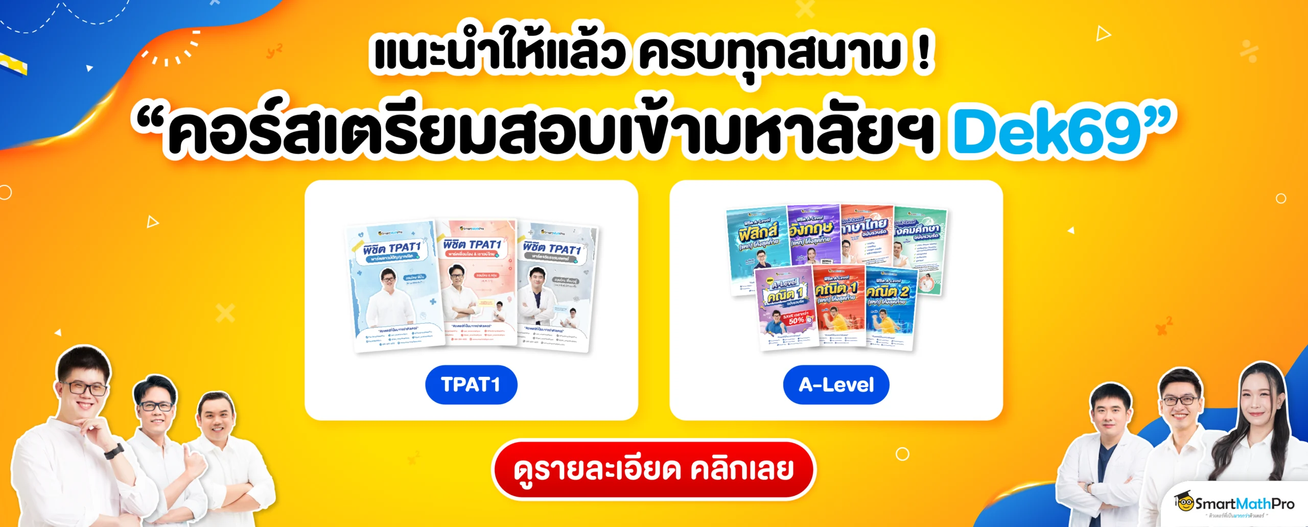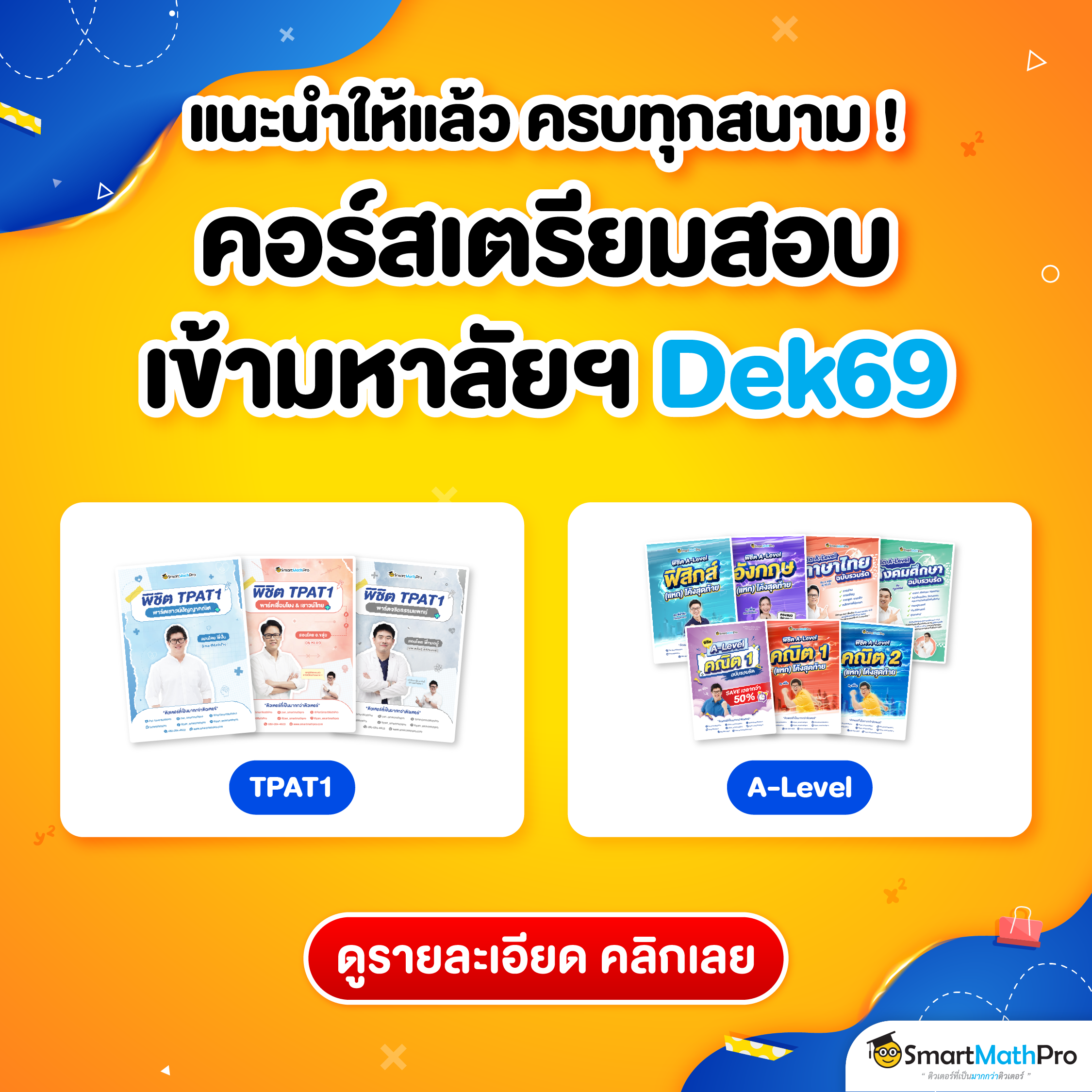 พี่ขอแนะนำตัวช่วยอย่าง คอร์สเตรียมสอบมหาลัยฯ ของ SmartMathPro เลยย มีให้เลือกมากมายทั้งสนาม TGAT / TPAT หรือ A-Level และสอนโดยติวเตอร์ที่มีความเชี่ยวชาญในแต่ละวิชาด้วย