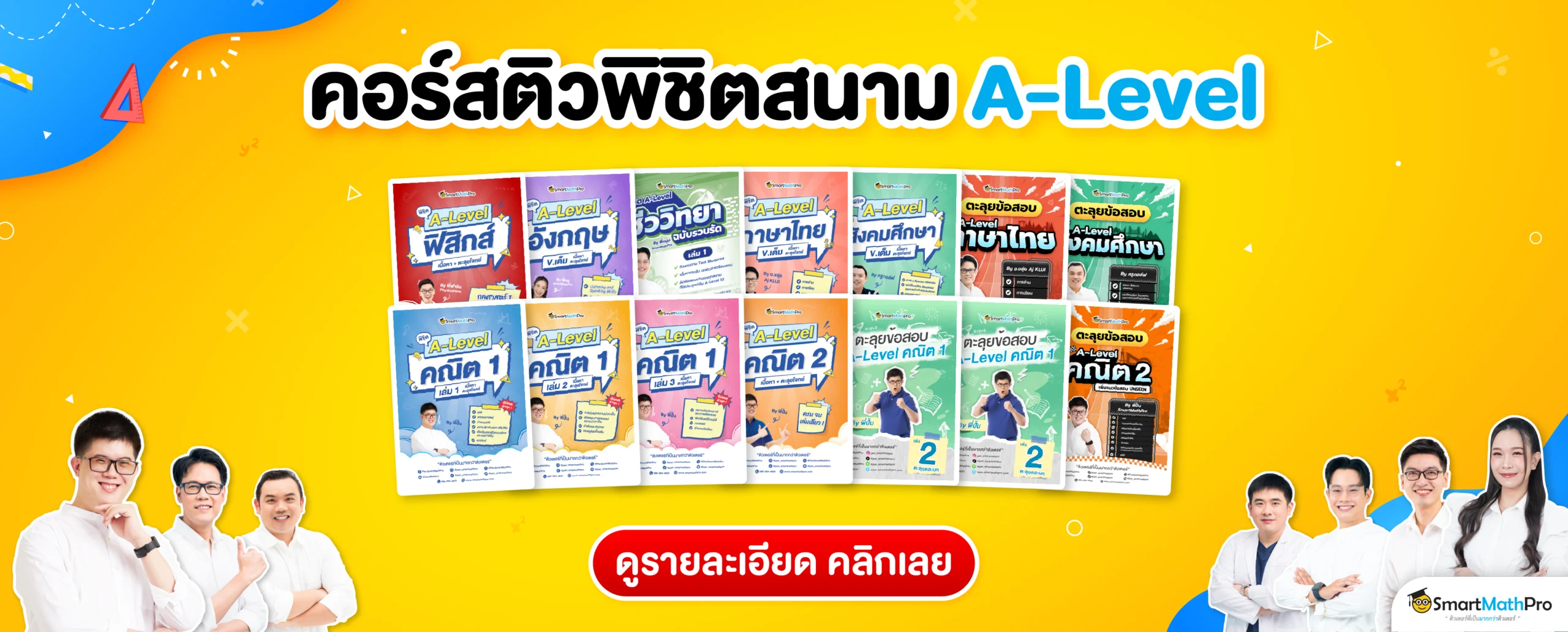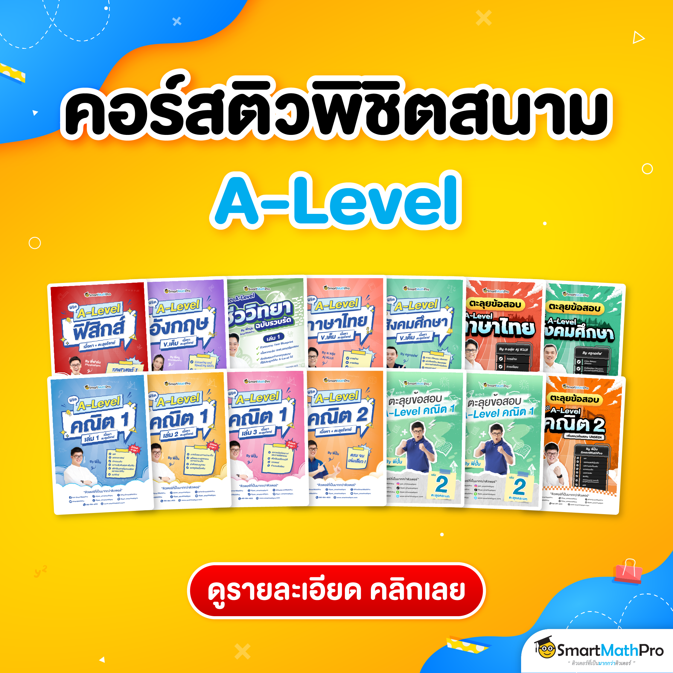พี่ขอแนะนำคอร์สเรียนพิเศษสนาม A-Level ของ SmartMathPro ที่มีทั้ง A-Level คณิต 1,2 / A-Level ภาษาอังกฤษ / A-Level ฟิสิกส์ / A-Level ภาษาไทย / A-Level สังคม เลยน้าา