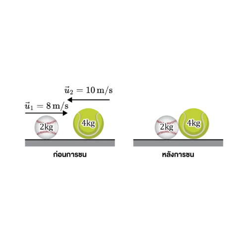 ดังนั้น ลูกบอลทั้งสองหลังการชน เคลื่อนที่ด้วยความเร็วขนาด 4 เมตรต่อวินาที ไปทางซ้าย
