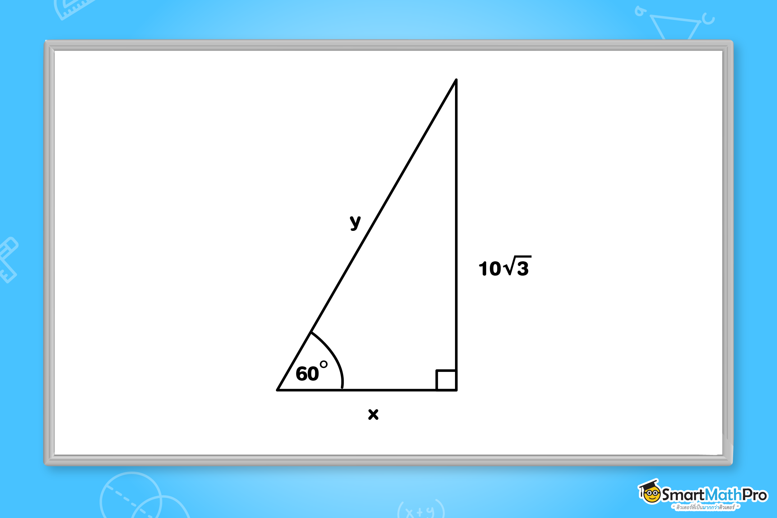 จากรูปจะได้ว่า \frac{10\sqrt{3}}{y} =\frac{\sqrt{3}}{2}