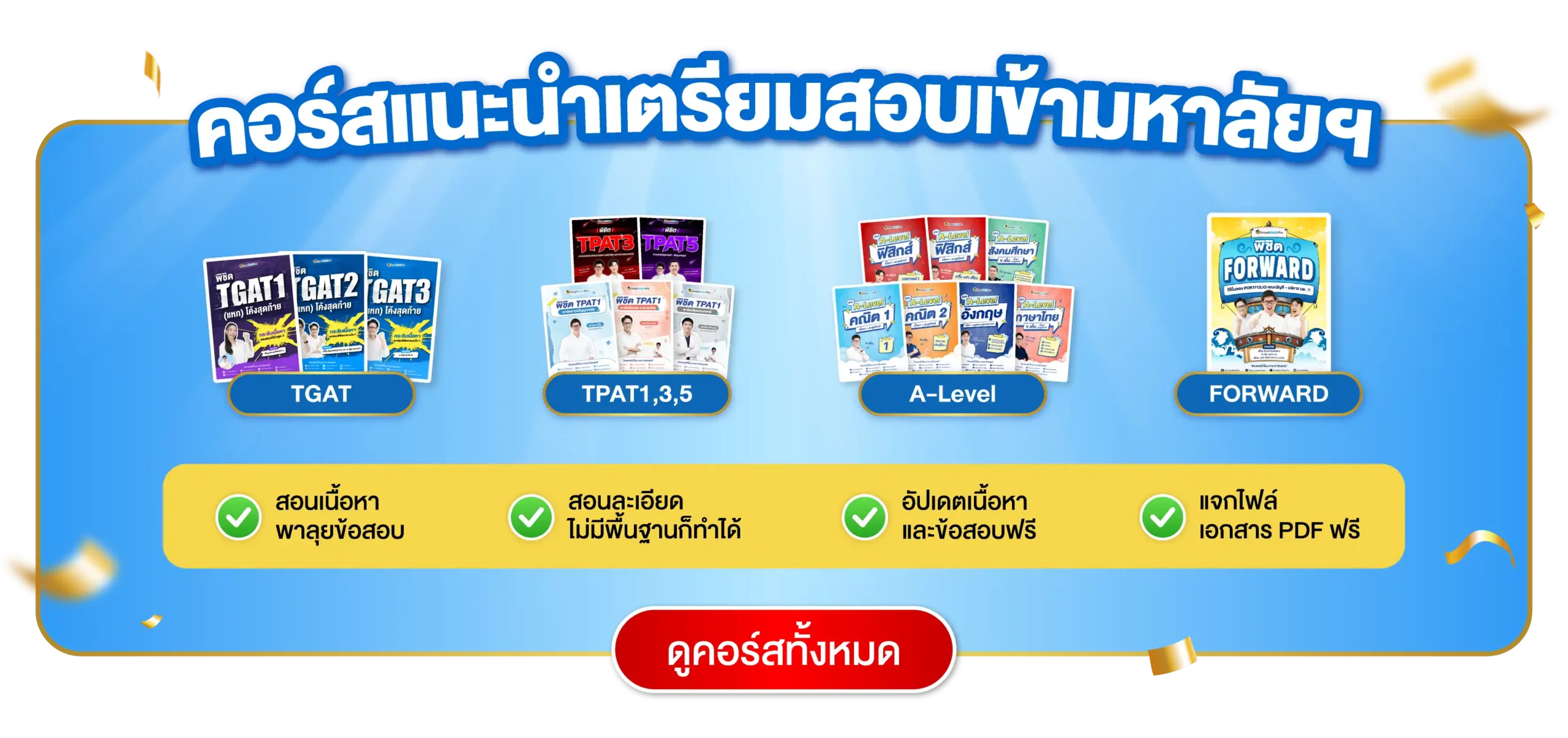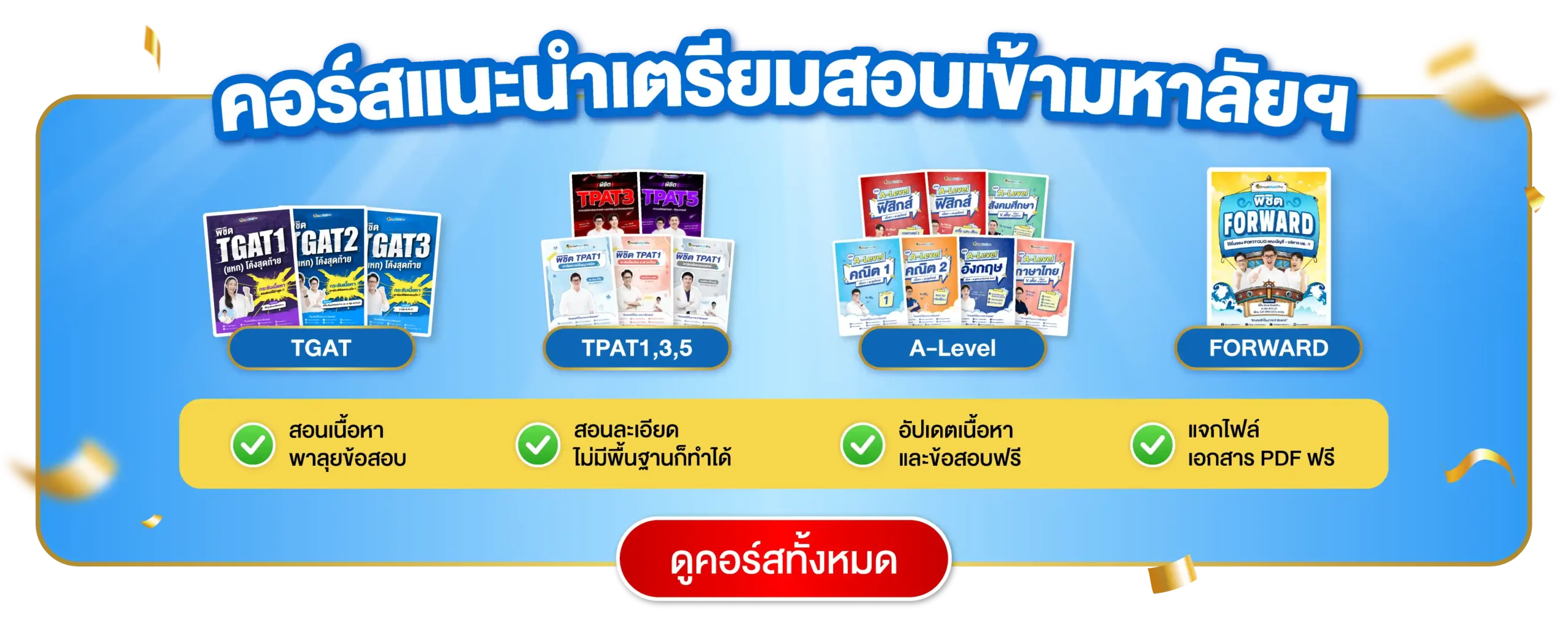 ผลงานลูกศิษย์รุ่น Dek66 กสพท วิทย์สุขภาพ บัญชี/บริหาร เศรษฐศาสตร์ วิศวกรรมศาสตร์ วิทยาศาสตร์ ดูรีวิวทั้งหมด คลิก สอบถามคอร์สเรียน TPAT1 (เชาวน์ปัญญา) TGAT2 (การคิดอย่างมีเหตุผล) ดูทั้งหมด คลิก A-Level คณิต 1 A-Level คณิต 2 ดูรีวิวทั้งหมด คลิก สอบถามคอร์สเรียน ดูรีวิวทั้งหมด คลิก สอบถามคอร์สเรียน คณิตพื้นฐาน คณิตเพิ่มเติม รวมรีวิวจากน้องๆ ดูรีวิวทั้งหมด คลิก อยากคะแนนดีแบบรุ่นพี่ เริ่มเตรียมตัวเลยตอนนี้ ! สอบเข้ามหาลัยฯ เสริมเกรด สอบเข้ามหาลัยฯ เสริมเกรด
