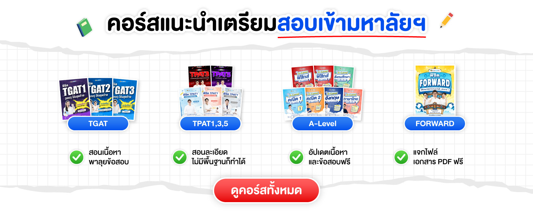 PACK TPAT1 (ครบ 3 พาร์ต) + A-Level คณิต 1 (V.เต็ม + ตะลุยโจทย์) + ไทย-สังคม (V.รวบรัด)